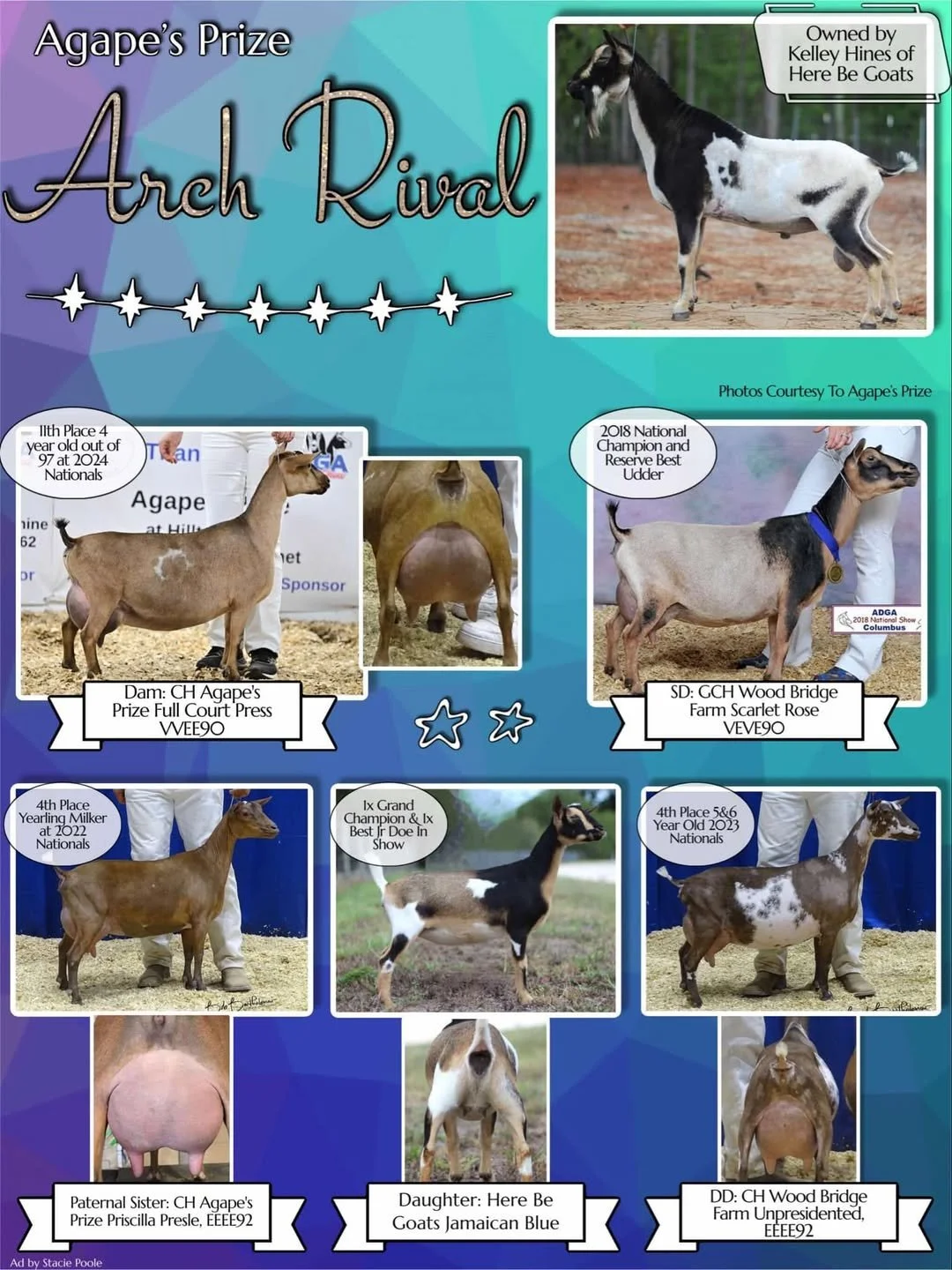 SIRE OF Agape's Prize Praise Be, the 3rd place yearling at 2022 Nationals and 5th place 2 year old at 2023 Nationals.
