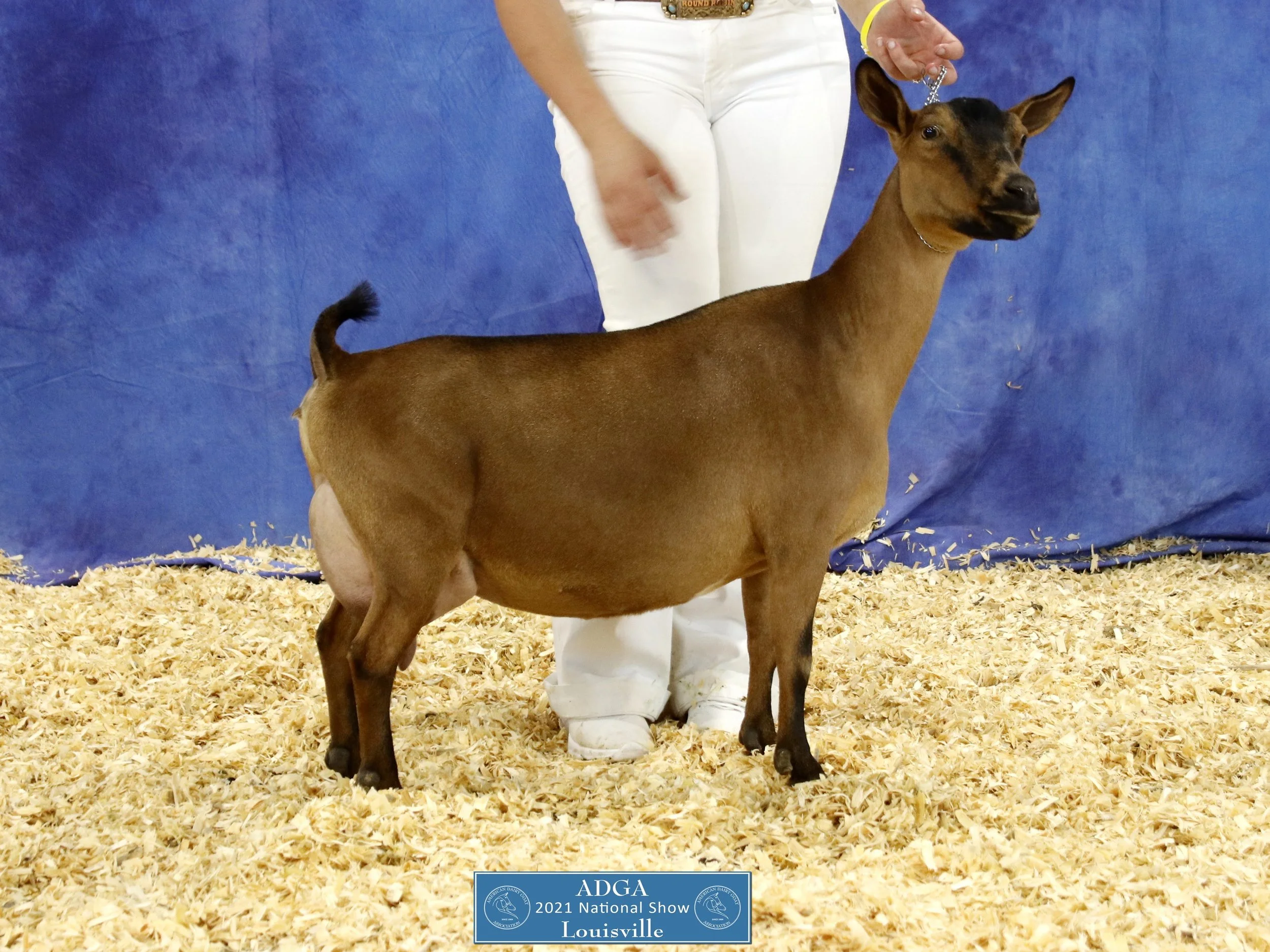 “Count very easily finished his championship as a two year old buck in the first ring of the first buck show of the 2020 season….Count’s dam was the 4th place 4yo doe at the 2019 ADGA National Show…2021 ADGA National show: He sired the 3rd/3rd udder 3yo, Darlin Diva, the 8th place 2yo, Stella, the 6th place yearling milker, Snow Boots, and the 9th place Jr yearling, Pumpkin Pie”